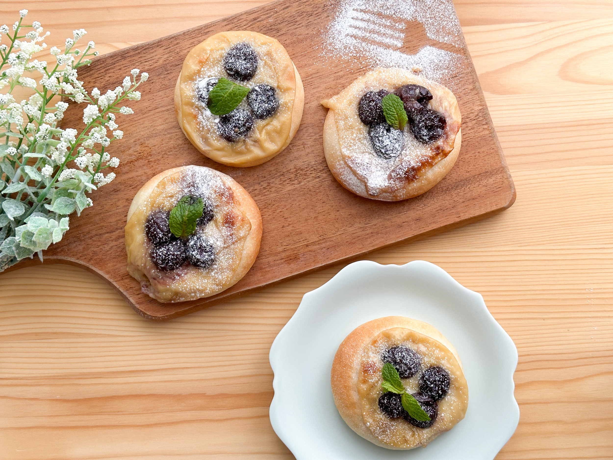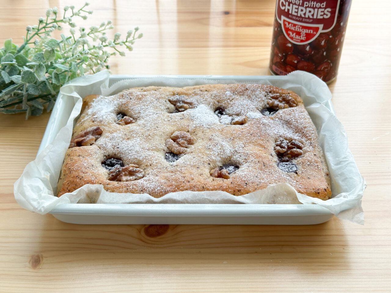 アールグレイ生地にくるみとダークチェリーを乗せて。