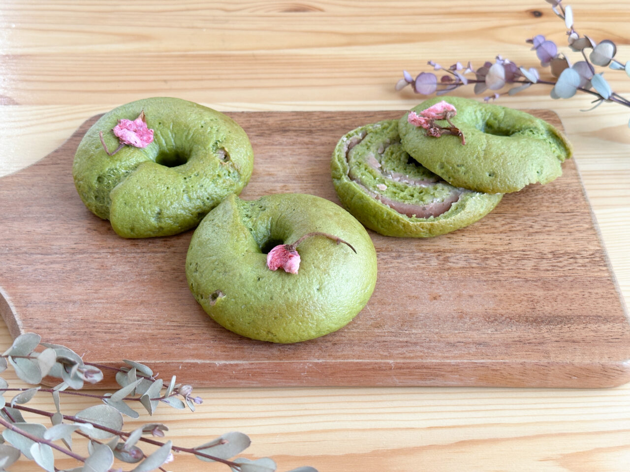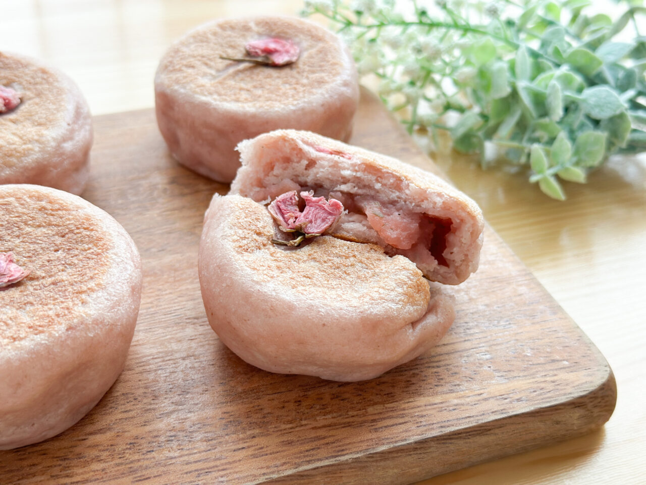 さくら餡を練りこみ、桜の塩漬けを飾りました。